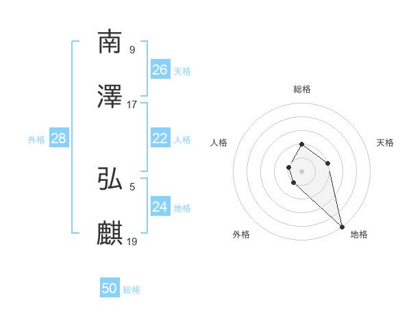 南澤 弘麒さんの総格は50画の2点!