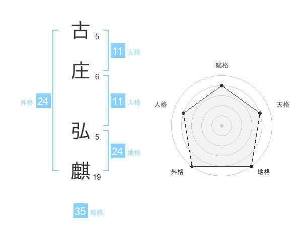 古庄 弘麒さんの外格は24画の5点!