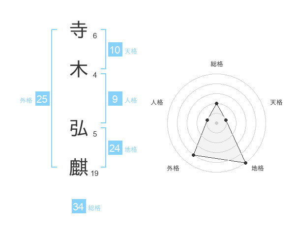 寺木 弘麒さんの総格は34画の2点!