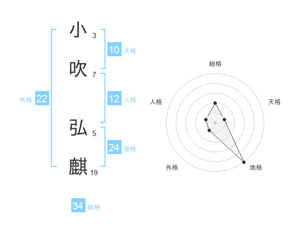 小吹 弘麒さんの総格は34画の2点!