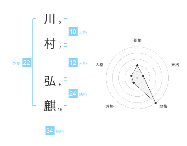 川村 弘麒さんを姓名の画数から五運を鑑定