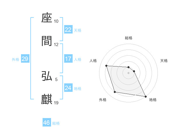 座間 弘麒さんを姓名の画数から五運を鑑定