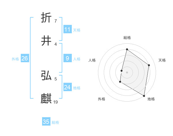 折井 弘麒さんを姓名の画数から五運を鑑定