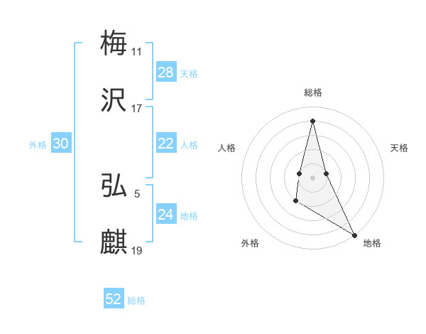梅沢 弘麒さんの総格は52画の4点!