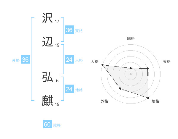 沢辺 弘麒さんの総格は60画の1点!