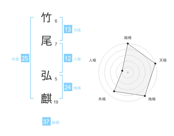 竹尾 弘麒さんの総格は37画の5点!