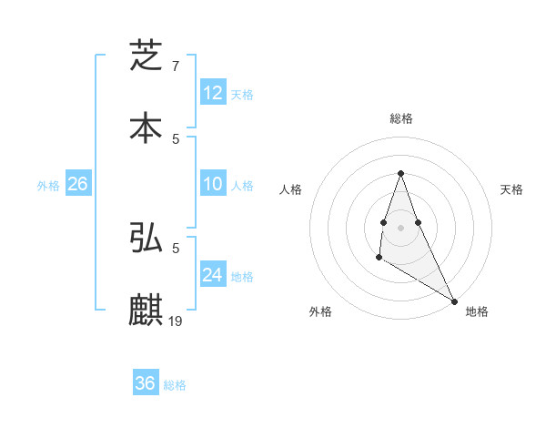 芝本 弘麒さんを姓名の画数から五運を鑑定