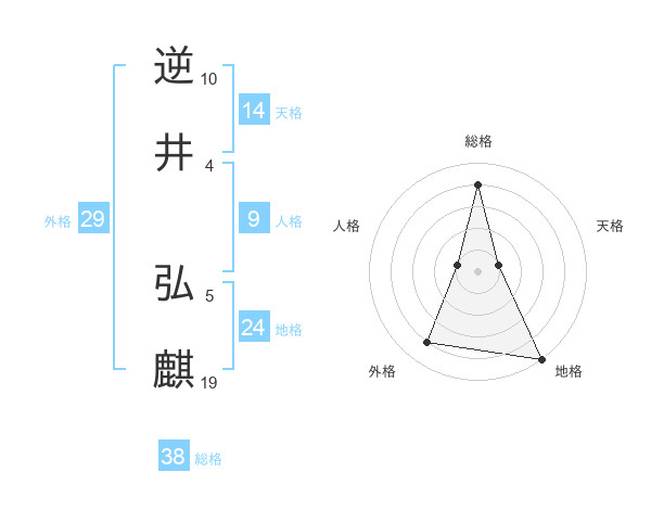 逆井 弘麒さんの総格は38画の4点!