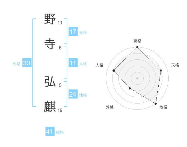 野寺 弘麒さんの総格は41画の5点!
