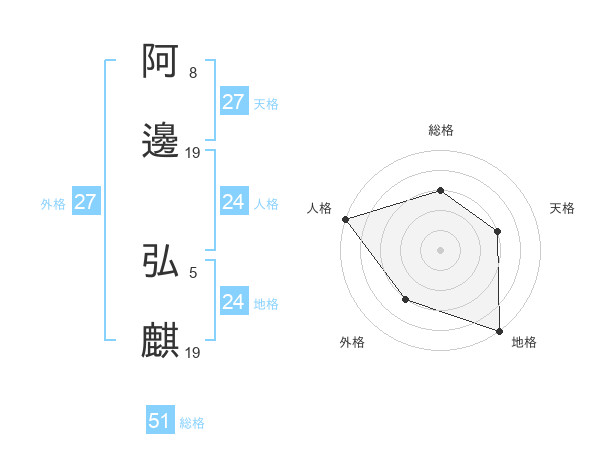 阿邊 弘麒さんを姓名の画数から五運を鑑定