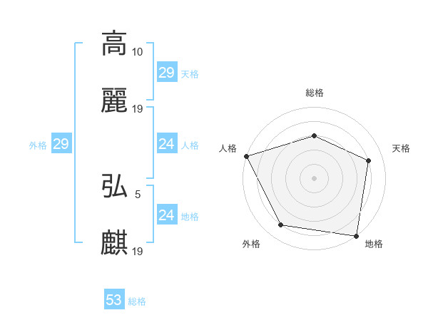 高麗 弘麒さんの総格は53画の3点!