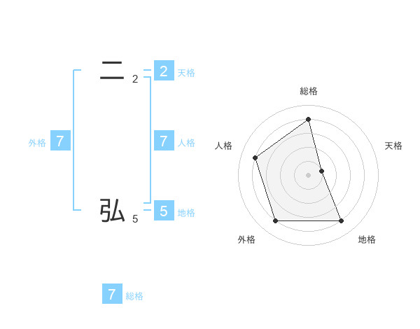 二 弘さんの外格は7画の4点!