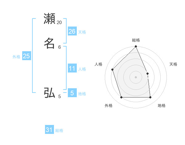 瀬名 弘さんの総格は31画の5点!