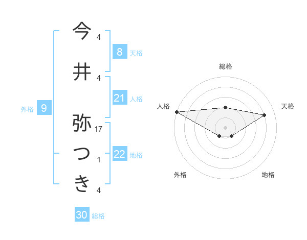 今井 弥つきさんの天格は8画の4点!
