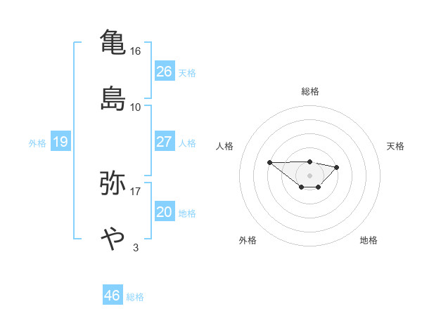 亀島 弥やさんの総格は46画の1点!