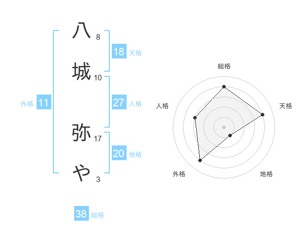 八城 弥やさんの総格は38画の4点!