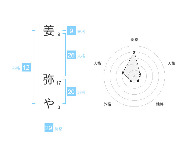 姜 弥やさんの総格は29画の4点!