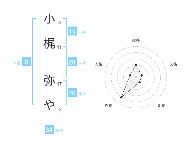 小梶 弥やさんを姓名の画数から五運を鑑定
