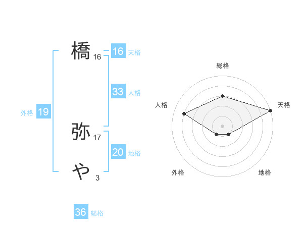 橋 弥やさんの総格は36画の3点!