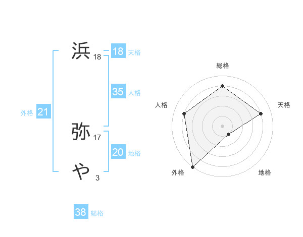 浜 弥やさんの総格は38画の4点!