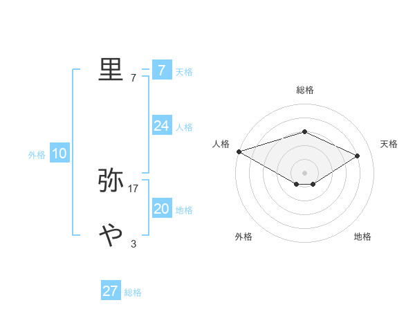 里 弥やさんの総格は27画の3点!