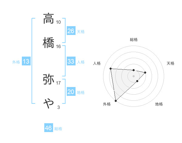 高橋 弥やさんを姓名の画数から五運を鑑定