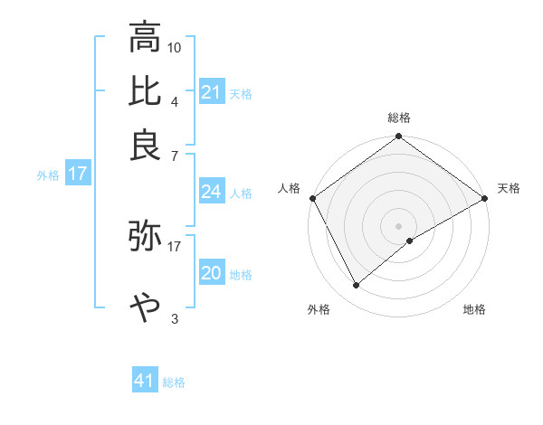 高比良 弥やさんの外格は17画の4点!