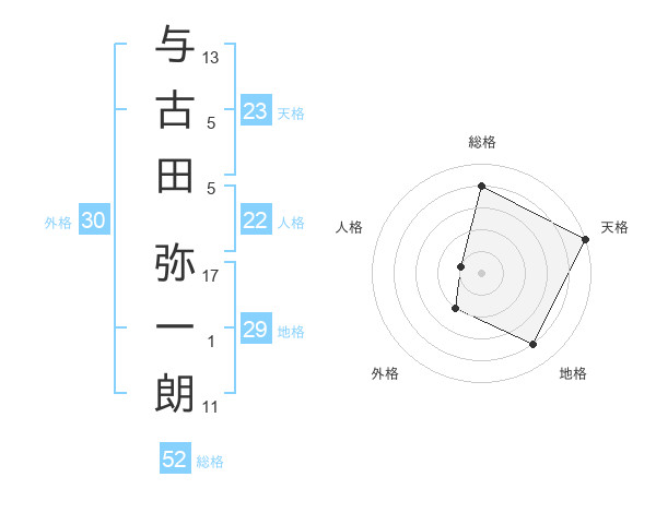 与古田 弥一朗さんを姓名の画数から五運を鑑定