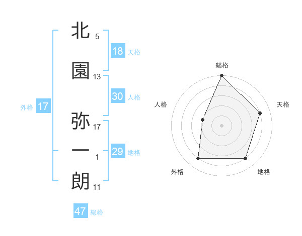 北園 弥一朗さんを姓名の画数から五運を鑑定