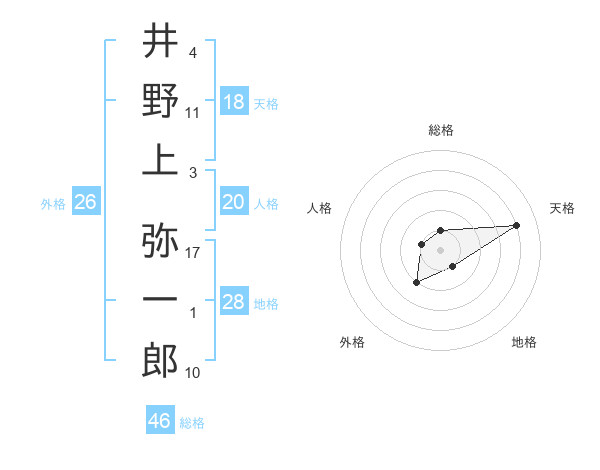 井野上 弥一郎さんを姓名の画数から五運を鑑定