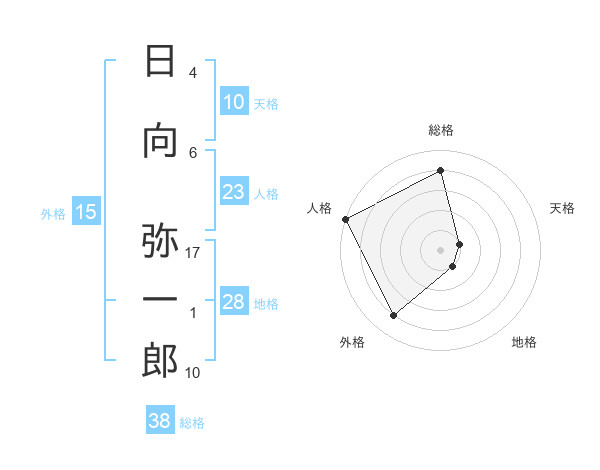 日向 弥一郎さんを姓名の画数から五運を鑑定