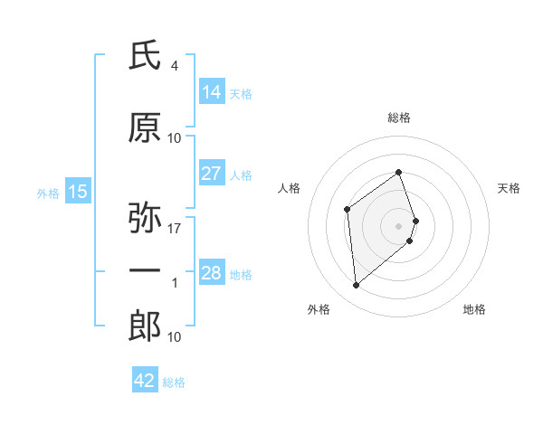 氏原 弥一郎さんを姓名の画数から五運を鑑定