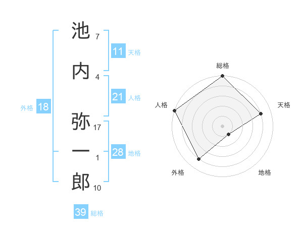 池内 弥一郎さんを姓名の画数から五運を鑑定
