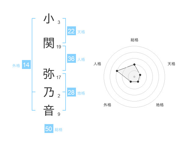 小関 弥乃音さんを姓名の画数から五運を鑑定