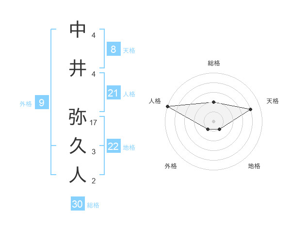 中井 弥久人さんを姓名の画数から五運を鑑定