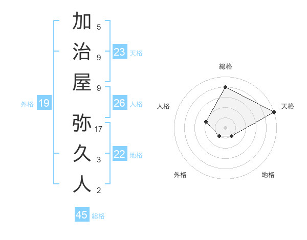 加治屋 弥久人さんを姓名の画数から五運を鑑定