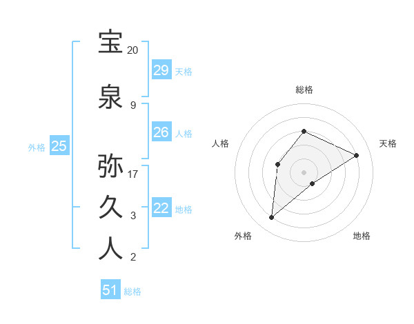 宝泉 弥久人さんを姓名の画数から五運を鑑定