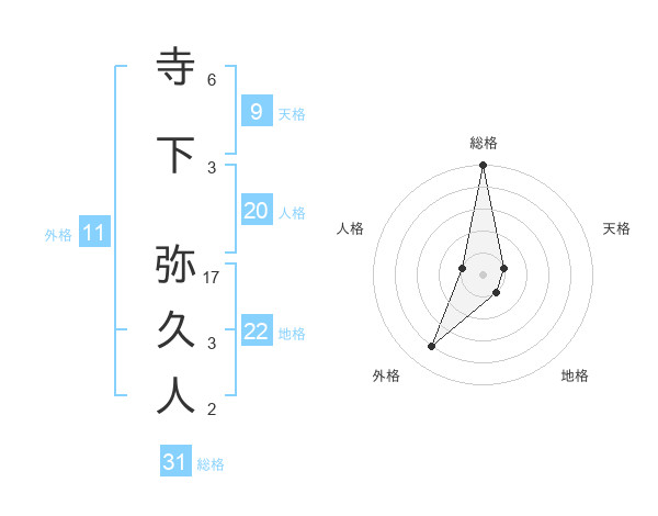 寺下 弥久人さんの総格は31画の5点!