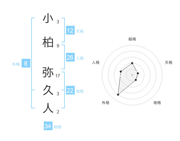 小柏 弥久人さんの総格は34画の2点!