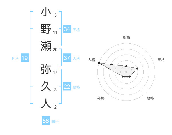 小野瀬 弥久人さんを姓名の画数から五運を鑑定