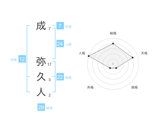 成 弥久人さんの総格は29画の4点!