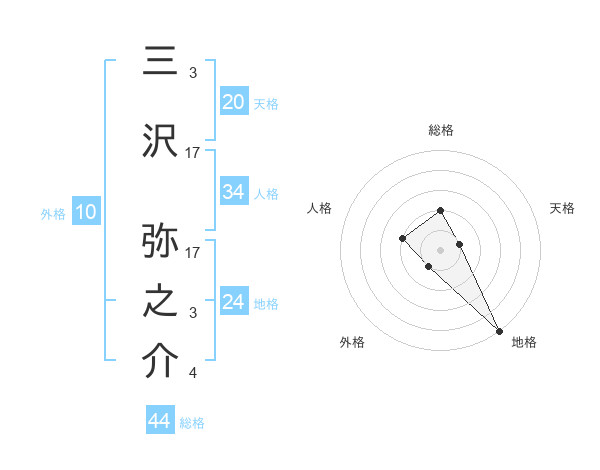 三沢 弥之介さんの総格は44画の2点!
