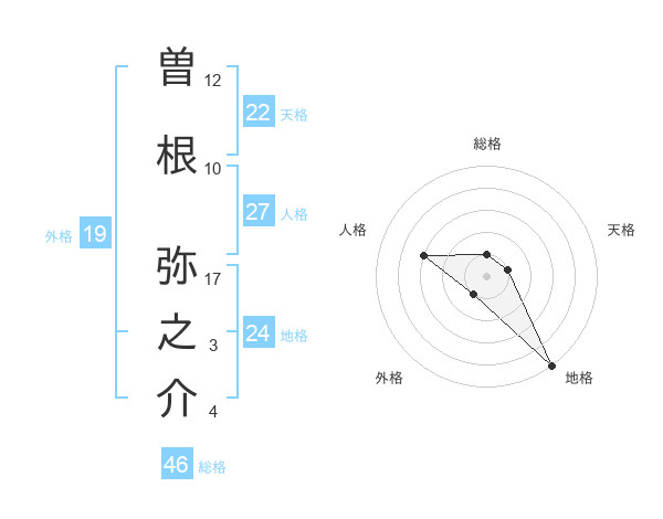 曽根 弥之介さんを姓名の画数から五運を鑑定