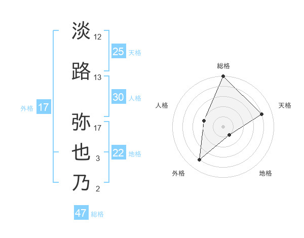 淡路 弥也乃さんを姓名の画数から五運を鑑定