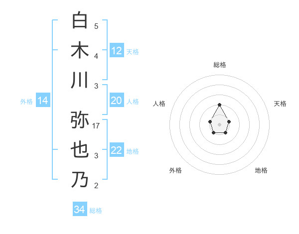白木川 弥也乃さんの総格は34画の2点!