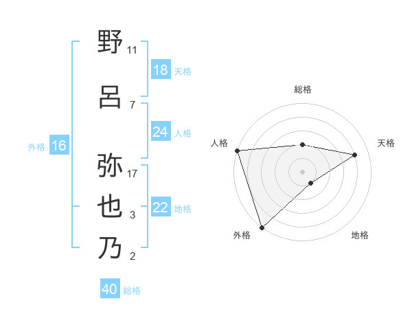 野呂 弥也乃さんの地格は22画の1点!