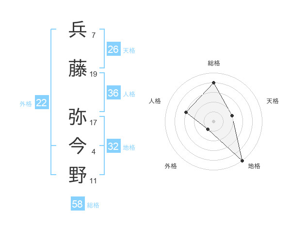 兵藤 弥今野さんを姓名の画数から五運を鑑定