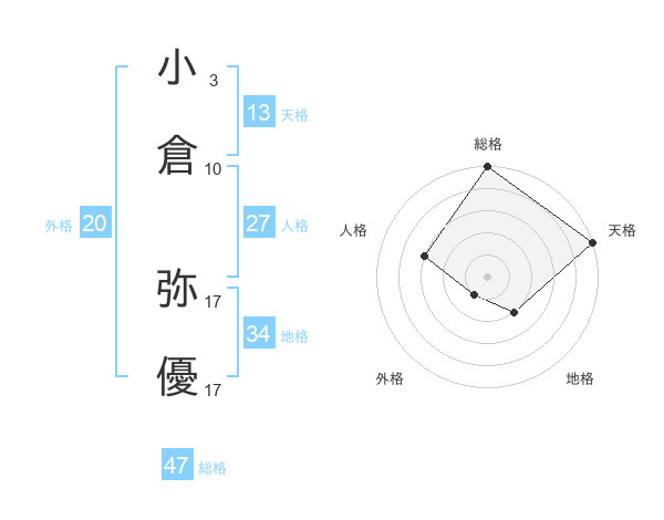 小倉 弥優さんの総格は47画の5点!