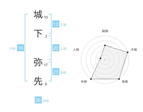 城下 弥先さんの地格は23画の5点!
