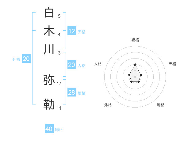 白木川 弥勒さんの総格は40画の2点!